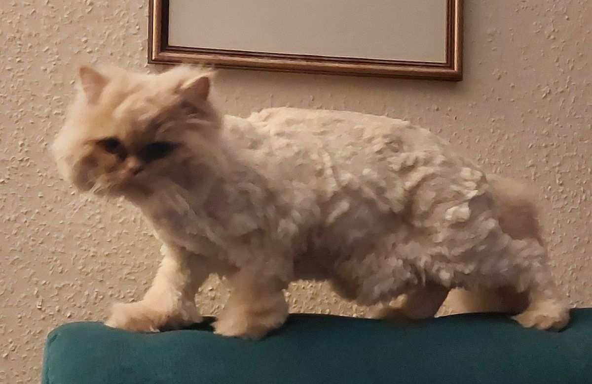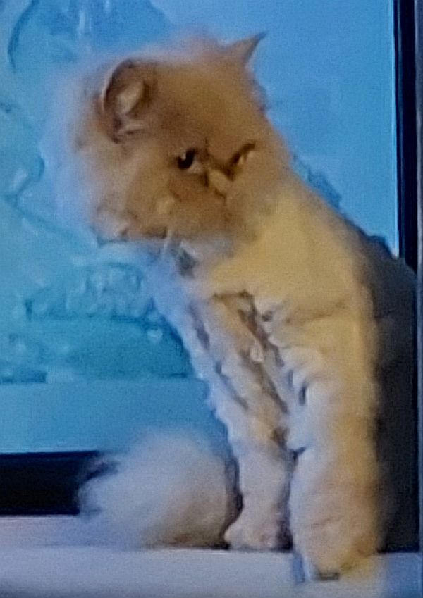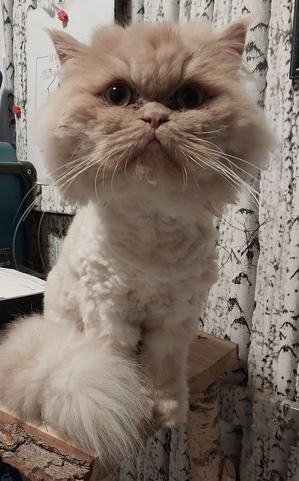 Bella ist eine ausgeglichene, ruhige Dame, deren Äußeres zurzeit etwas ramponiert ist, aber eines der Fotos zeigt, wie sie wieder aussehen wird, wenn das Fell nachgewachsen ist. Eine regelmäßige Fellpflege ist notwendig, damit sie nicht wieder geschoren werden muss. Bitte beachten Sie die speziellen Anforderungen der Fellpflege bei Perserkatzen.
