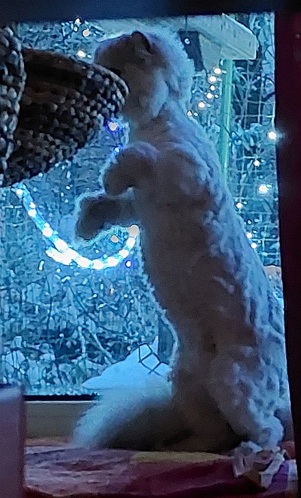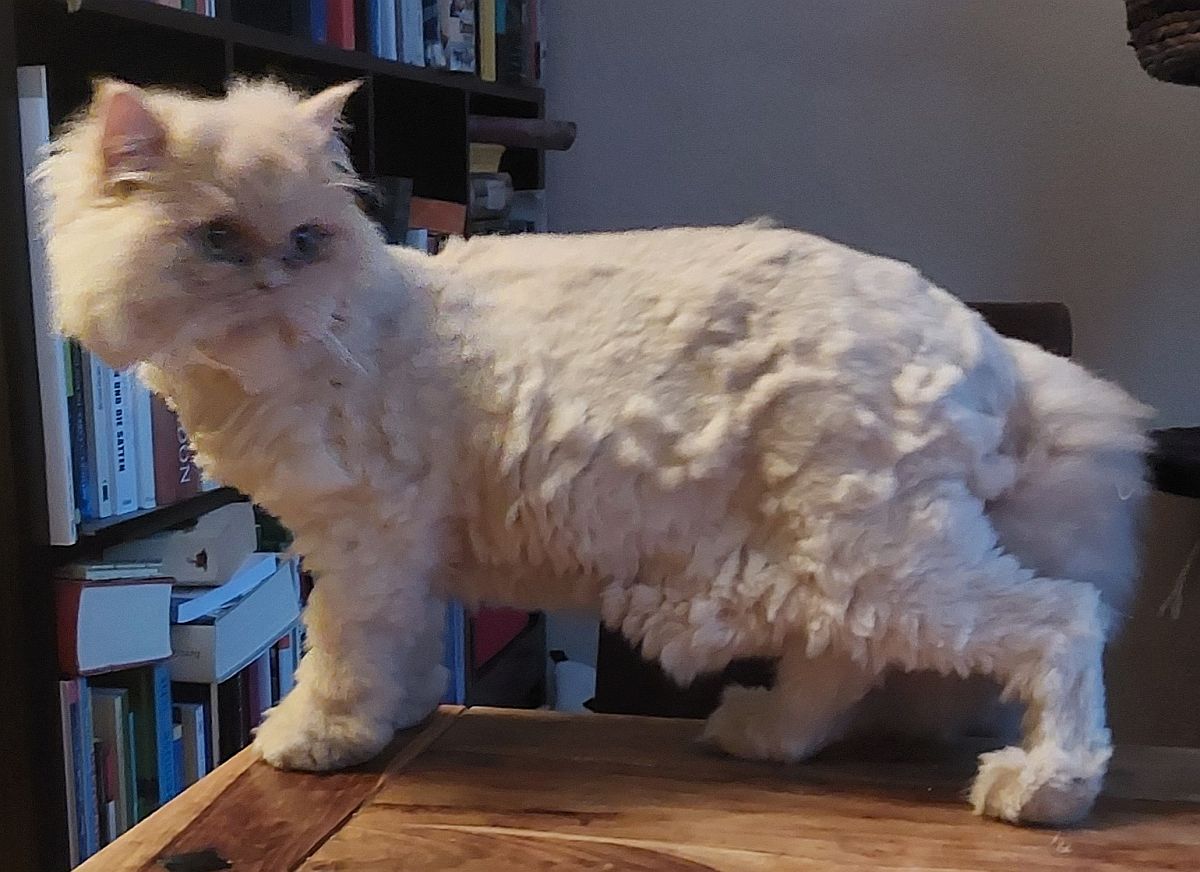 Bella kann einige Stunden allein bleiben, über Gesellschaft freut sie sich aber und begrüßt uns stets mit einem entzückenden Maunzen, das fast wie Vogelgezwitscher klingt.