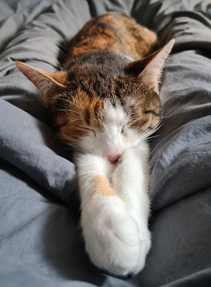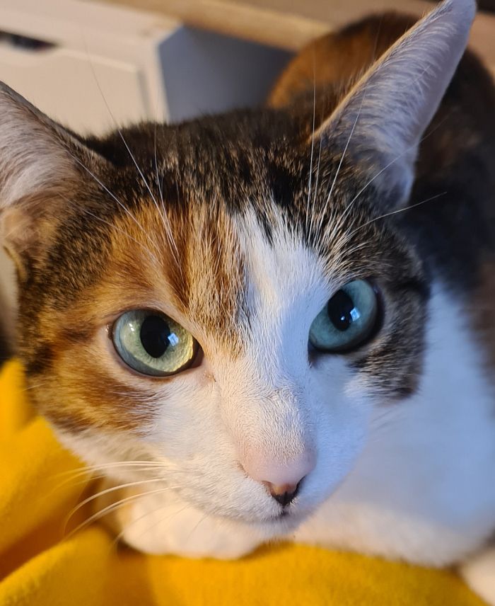 Chio leidet an FORL, weshalb ihr mehrere Zähne entfernt wurden. Sie frisst ausschließlich Nassfutter und bekommt hypoallergenes Spezialfutter, das problemlos online bestellbar ist. Damit kommt sie sehr gut zurecht.