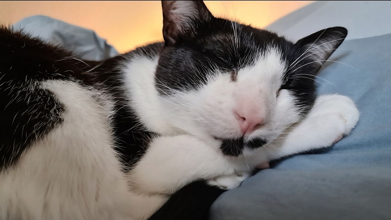 Benji ist der ruhige und gemütliche Part des Duos: er liebt langes schlafen, sich zu sonnen und liegt am liebsten den ganzen Tag auf seinem Menschen und lässt sich kraulen.