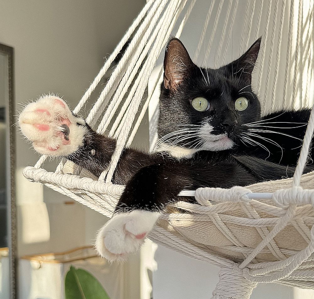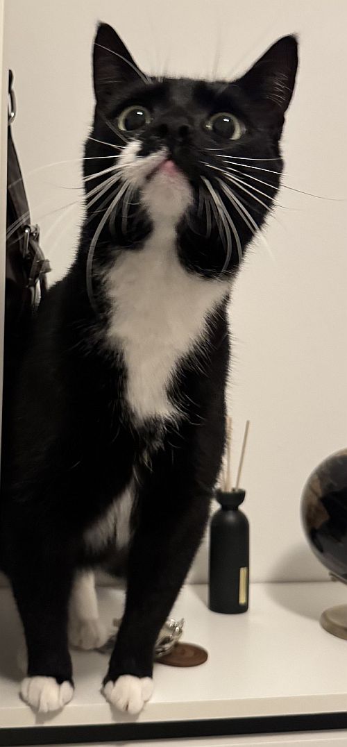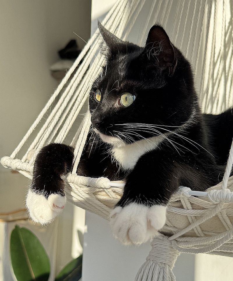 Bei uns hat er sich unfassbar schnell eingelebt und ist Menschen gegenüber sehr offen. Generell ist er voller Energie und liebt es, mit Hilfe einer Katzenangel durch die ganze Wohnung zu rasen und dabei beeindruckende Sprünge hinzulegen. Er liebt hohe Rückzugsplätze und den Blick aus dem Fenster. Er hätte bestimmt auch gerne wieder einen gesicherten Balkon.