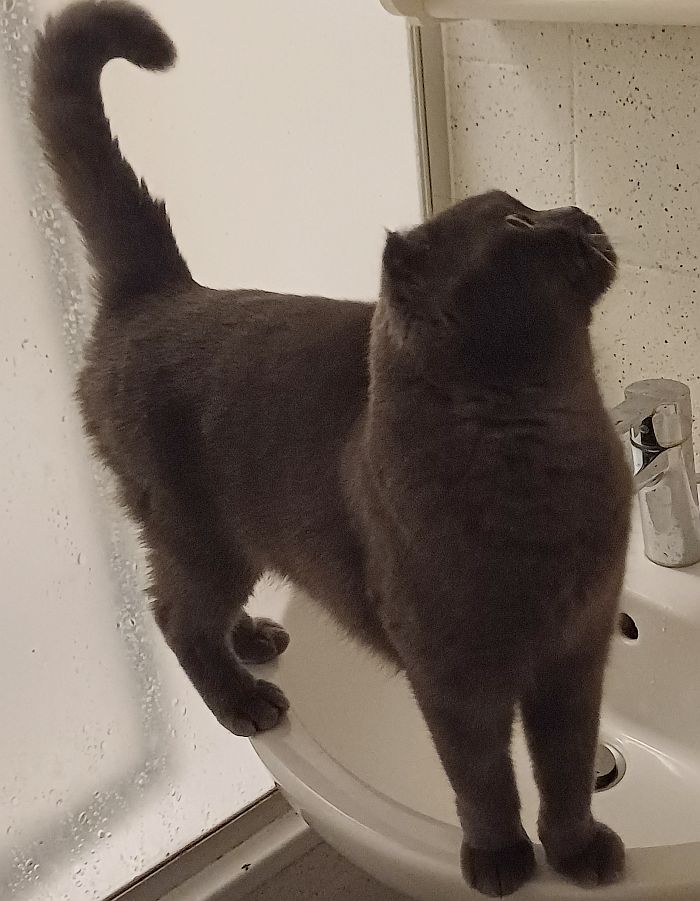 Cica ist im Vergleich zu mir etwas neugieriger und mutiger, jedoch ist auch sie erstmal beobachtend. Sie liebt Wasser und sitzt gerne in der Badewanne oder auf dem Waschbecken und wartet darauf, dass man den Hahn anmacht.
