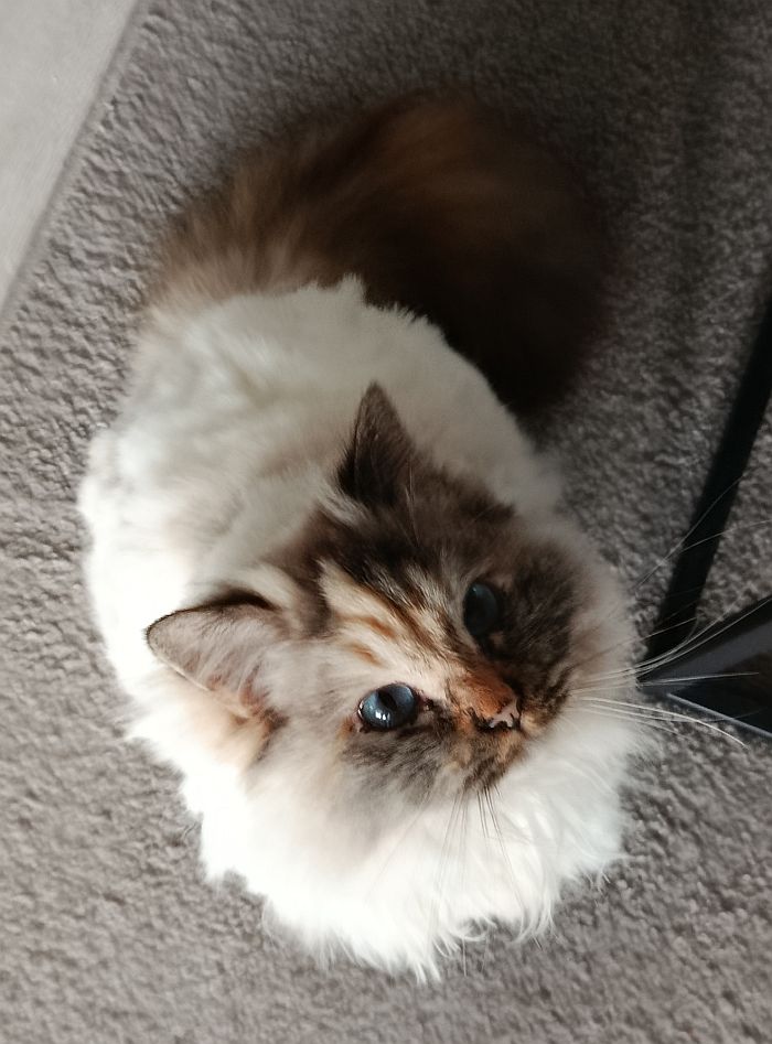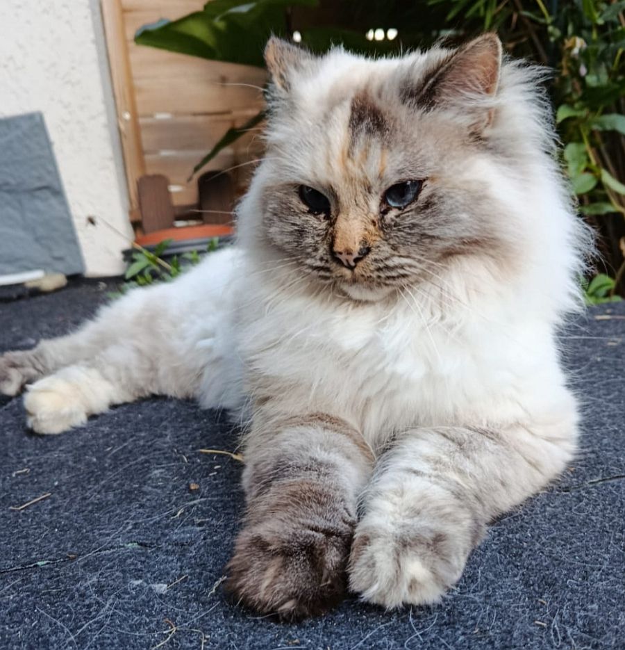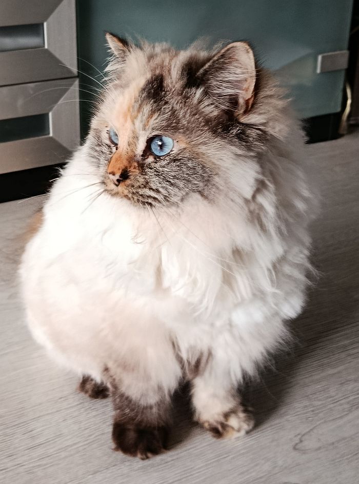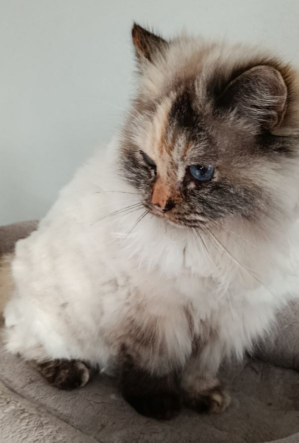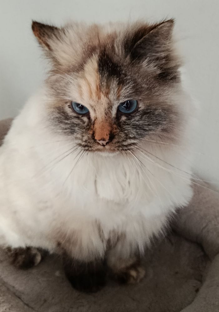 Maya ist kastriert, gechipt und geimpft (komplette Grundimmunisierung). Sie hat keinerlei Futterunverträglichkeiten. Ihr Wasser trinkt sie gerne aus dem Katzenbrunnen. Maya ist ein Mix aus Heiliger Birma und Ragdoll (nicht ganz einfach in der Fellpflege, darum stutze ich ihre Fellpracht zum Winter hin).