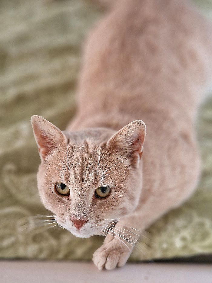 Der junge, außergewöhnlich hübsche Misu (geb. 2023) ist anfangs noch sehr schüchtern und braucht etwas Zeit, um Vertrauen zu fassen. Doch ist das Eis erst einmal gebrochen, entpuppt er sich als echter Schmusekater, der Nähe sehr genießt.