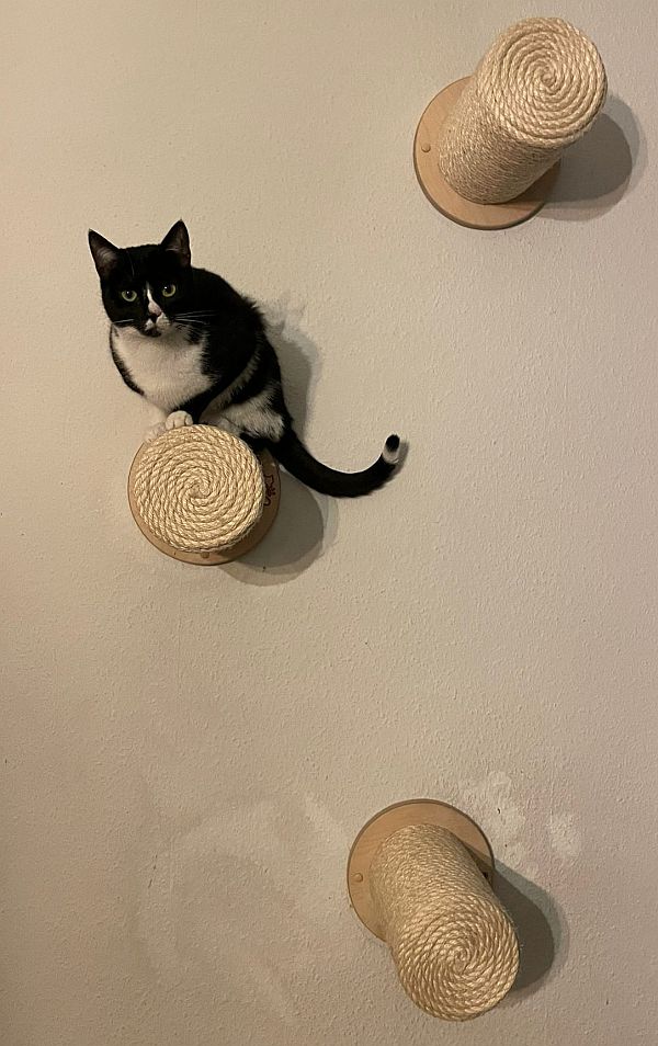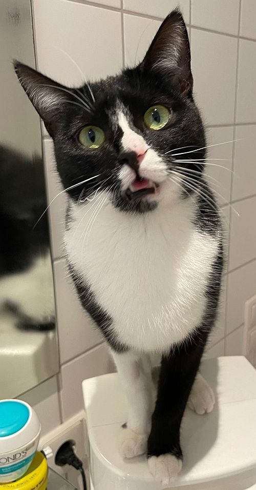 Am Anfang brauche ich ein bis zwei Tage, um ganz aufzutauen. Aber neugierig bin ich von der ersten Minute an! Ich erkunde alles – besonders gern in der Höhe. Regale, Schränke, hohe Kratzbäume? Für mich kein Problem. Ein Zuhause mit tollen Klettermöglichkeiten oder sogar einem Catwalk wäre mein absoluter Traum.