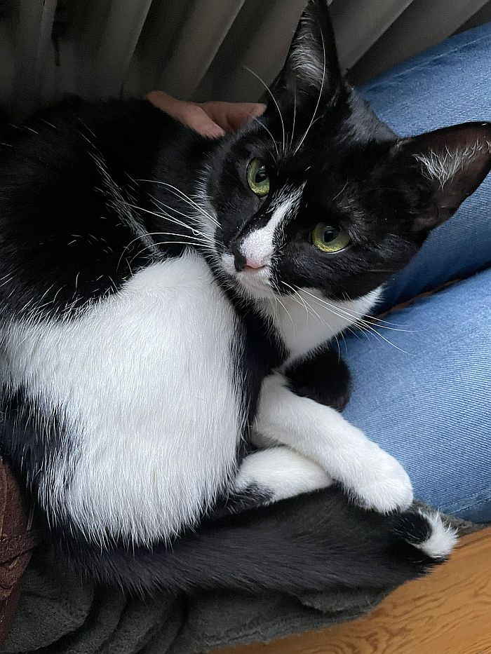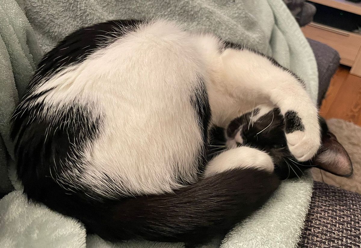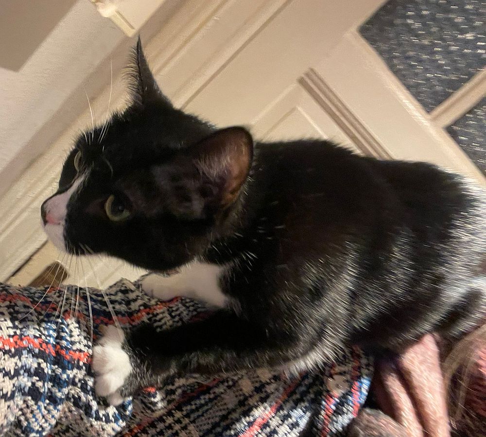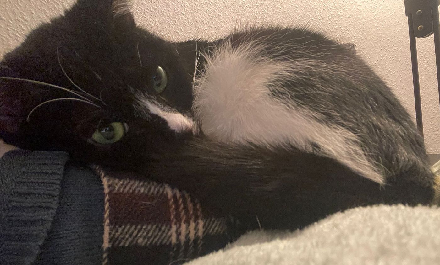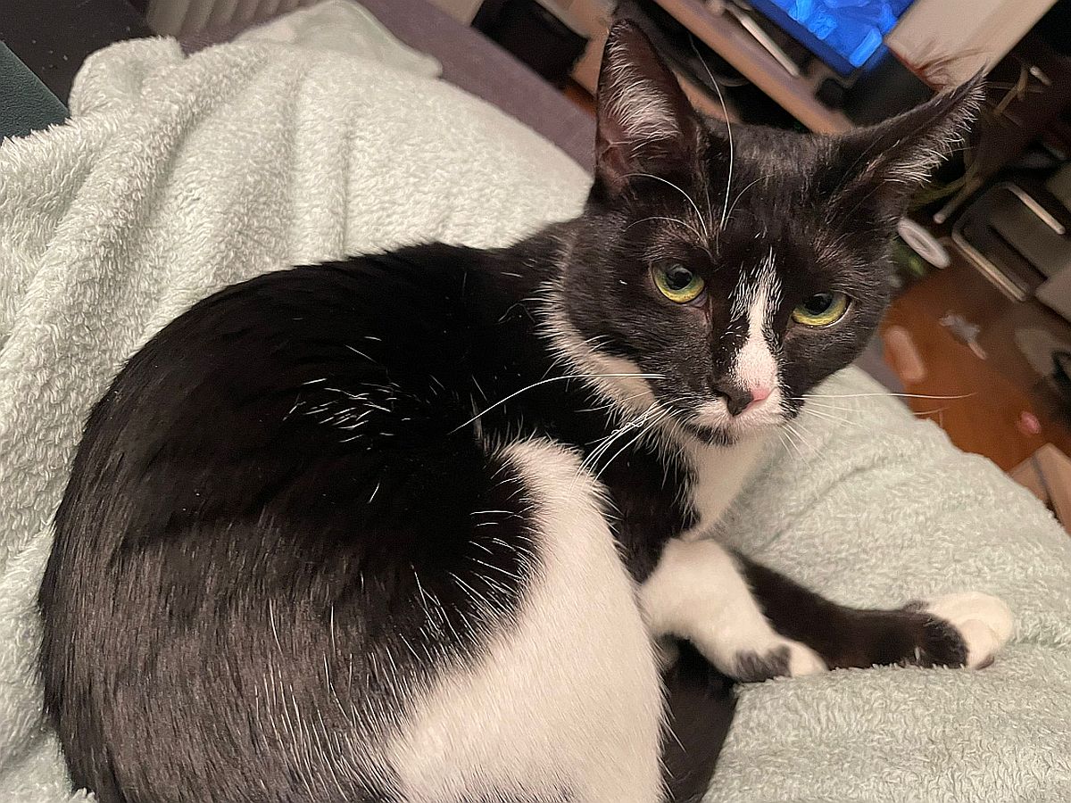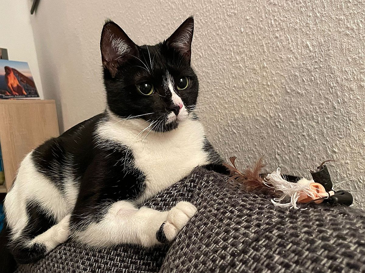 Ich bin sehr menschenbezogen und lebe aktuell mit meiner Pflegestelle im Homeoffice – das finde ich großartig. Ich schaue regelmäßig bei meinem Menschen vorbei, schlafe auch mal eine Runde auf dem Schoß, lasse mich gern kraulen und abends krabble ich liebend gern unter die Decke zum Kuscheln. Was ich allerdings nicht mag, sind geschlossene Türen, hinter denen meine Lieblingsmenschen verschwinden. Da protestiere ich schon mal ein bisschen – ich möchte einfach dazugehören.