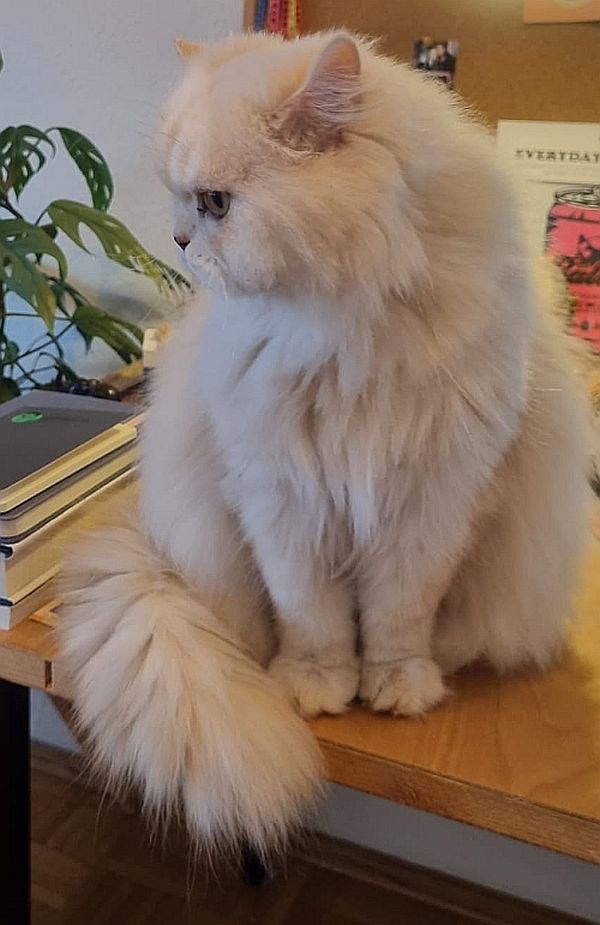 Als Perserkatze hat Sammy langes Fell, das regelmäßige Pflege braucht. Das Bürsten mag sie im Moment noch nicht besonders gerne, was bei ihrem Fell allerdings notwendig ist. Mit Geduld und etwas Übung kann sie sich vielleicht noch besser daran gewöhnen.