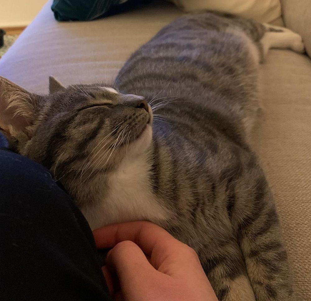 Spotty sitzt zudem gerne draußen auf dem Balkon, lauscht aufmerksam den Geräuschen und beobachtet die Vögel und spürt den Wind in seinem Fell. Daher wünschen wir uns auch für sein Für-Immer-Zuhause einen großen gesicherten Balkon oder die Möglichkeit zum Freigang in verkehrsarmer Gegend. Er ist sehr neugierig, möchte am liebsten jeden kleinen Spalt und jede Ecke erkunden und an allem schnuppern. Außerdem genießt er es, an frischem Katzengras zu knabbern. Generell ist er nicht besonders wählerisch beim Fressen und lässt sich schnell für vieles begeistern. Auch das Fummelbrett scheint ihm sehr zu gefallen.