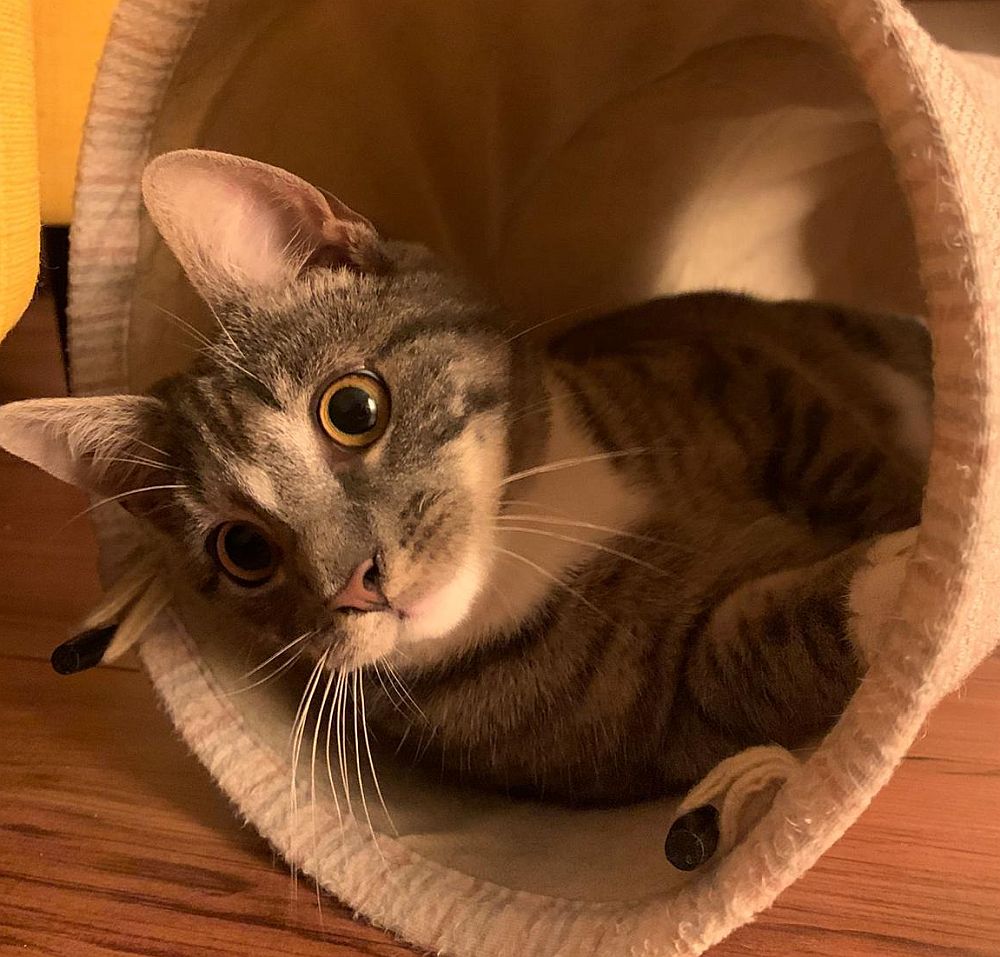 Der kleine Spotty ist mit ca. 9 Monaten ein alterstypisch aufgeweckter und verspielter süßer Kater, mit vielen Flausen im Kopf. Er hat sich sehr schnell in der Pflegestelle eingewöhnt, nachdem er als Streuner aufgefunden wurde. Hier zeigt er sich voller Energie, er liebt es, durch Tunnelsysteme zu toben, über Kletterelemente zu springen und so den Ausblick von weit oben zu genießen. Außerdem liebt er es, Tischtennisbälle oder andere kleine Bälle vor sich her zu kicken. Dabei genießt er es sehr, mit den Menschen zu spielen, aber er sucht auch stets die Nähe zu Artgenossen. Daher wünschen wir uns für Spottys Für-immer-Zuhause eine andere Katze im ähnlichen Alter, mit der er ausgiebig toben kann. Auch Kinder, die mit ihm spielen wollen, würden ihm gefallen.