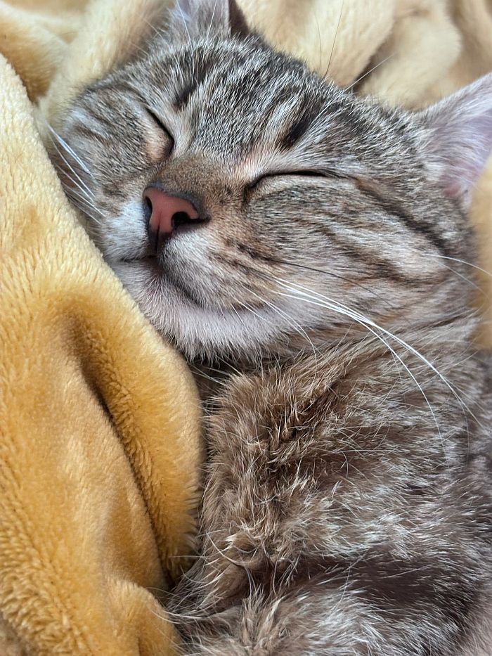Unsere kleine Tiger-Lilly ist ein zartes, kleines Mädchen mit dem Herzen einer Löwin. Sie ist als Straßenkatze im Juli 2025 zur Welt gekommen und seit März 2026 bei uns in der Pflegestelle. Hier hat sie alle schnell um ihre kleinen Pfoten gewickelt. Sie liebt es, mit den anderen Katzen zu toben und ist ziemlich frech dabei. Nach dem wilden Rennen kuschelt sie sich zufrieden auf die Couch oder auf unseren Schoß und liebt es, gekrault zu werden. Beim Fressen kennt sie keine Freunde, es wird geklaut, was das Zeug hält.